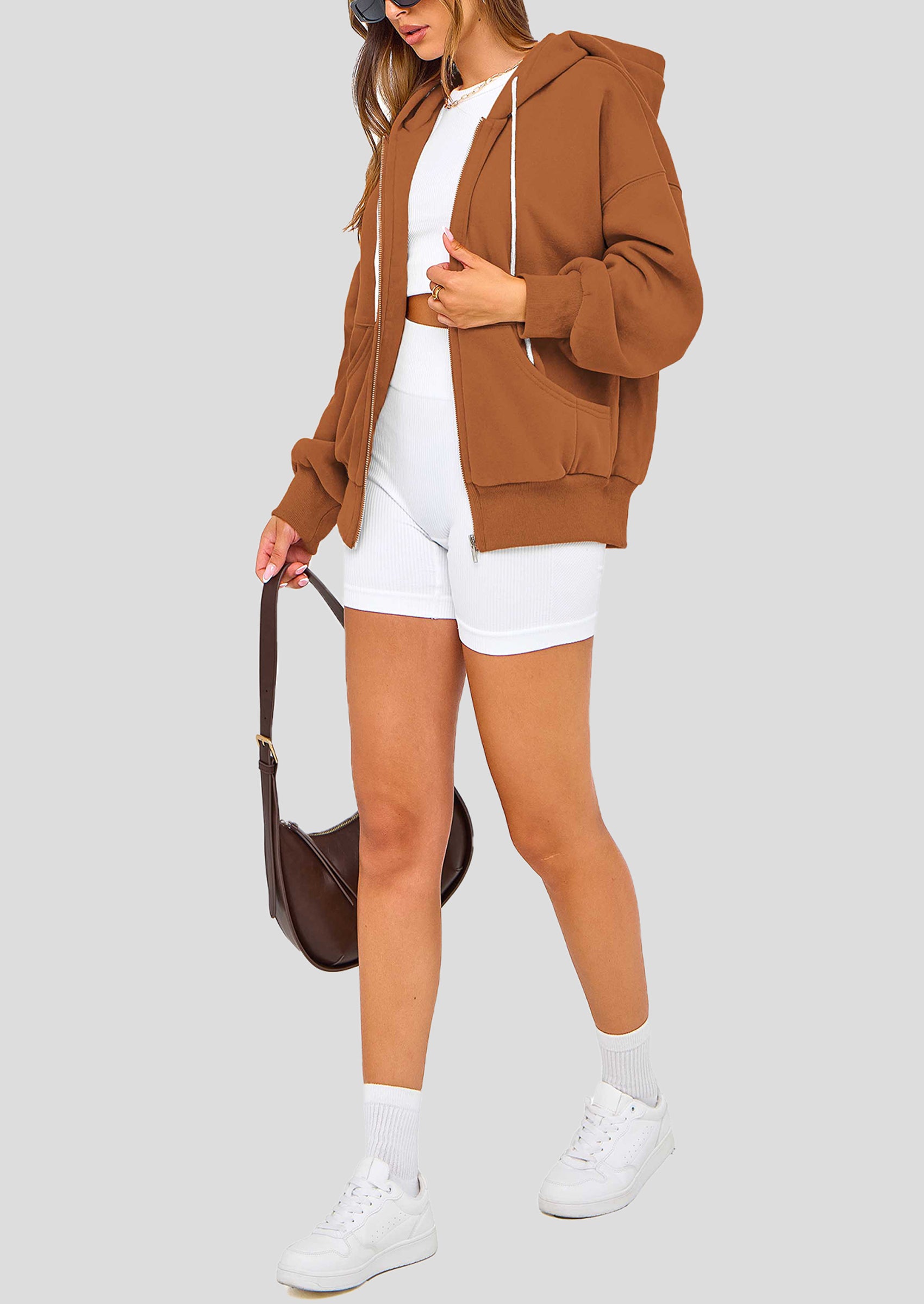 VERSATILE DETAILS: Drop Shoulder Fall Sweatshirts For Women In Loose Fit Provide A Cozy And Relaxed Feel, Suitable For All Kinds Of Body Shape Wearing. Zip Up Hoodies For Women Designed With Practical Handy Pockets Are Convenient For Carry Your Essentials