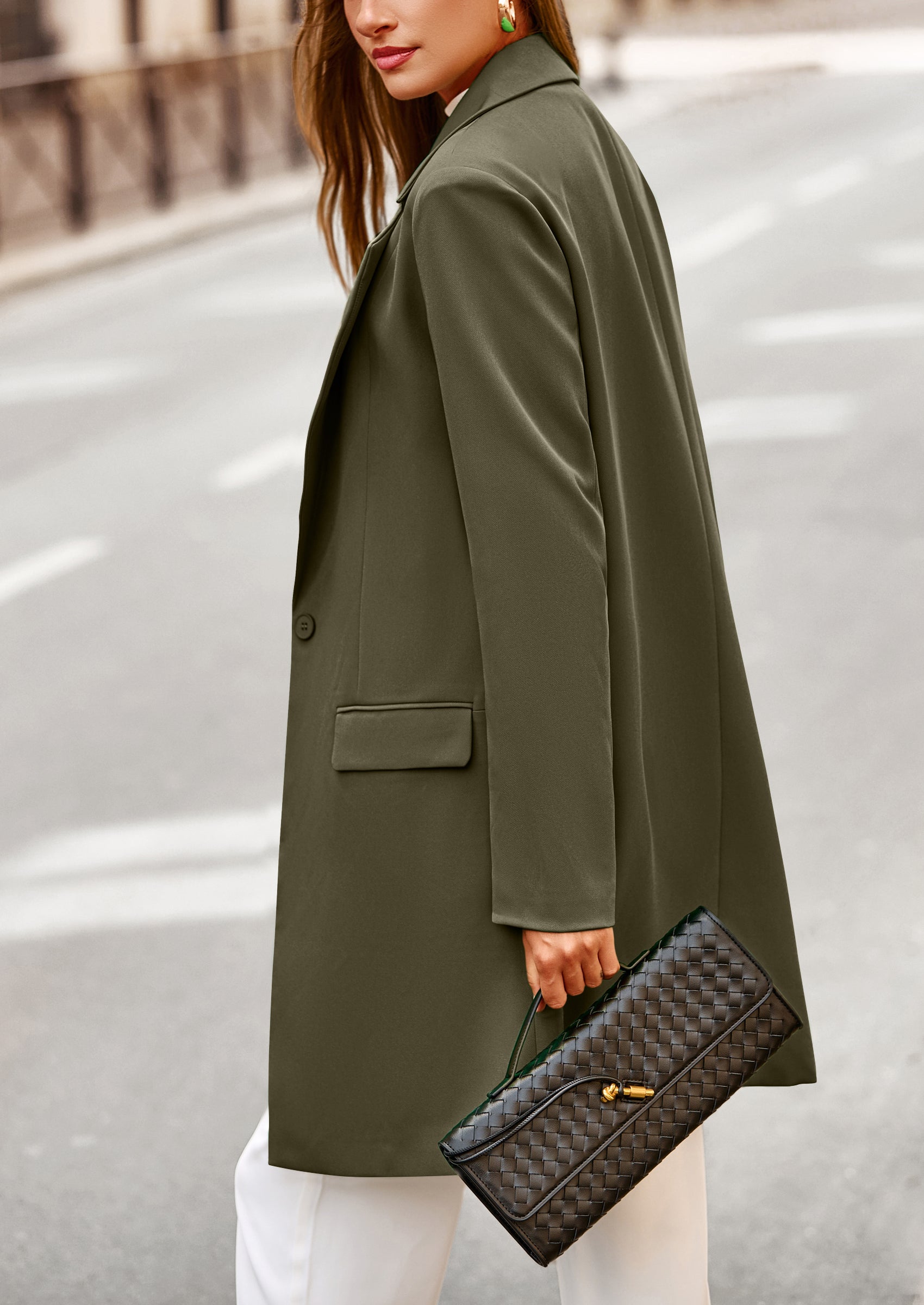 • Women's Spring Fall Long Blazer Jackets Long Sleeve Lapel Pockets Loose Fit Work Casual Blazers Outerwear