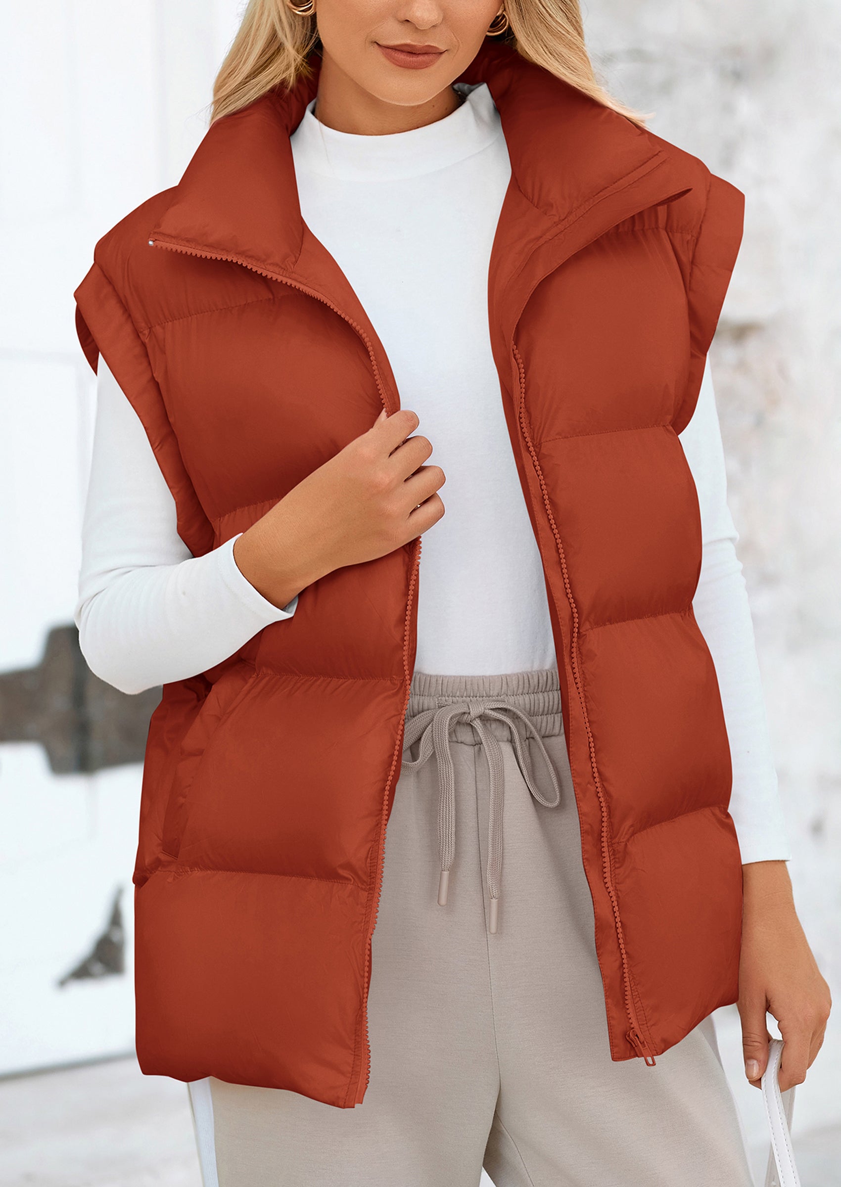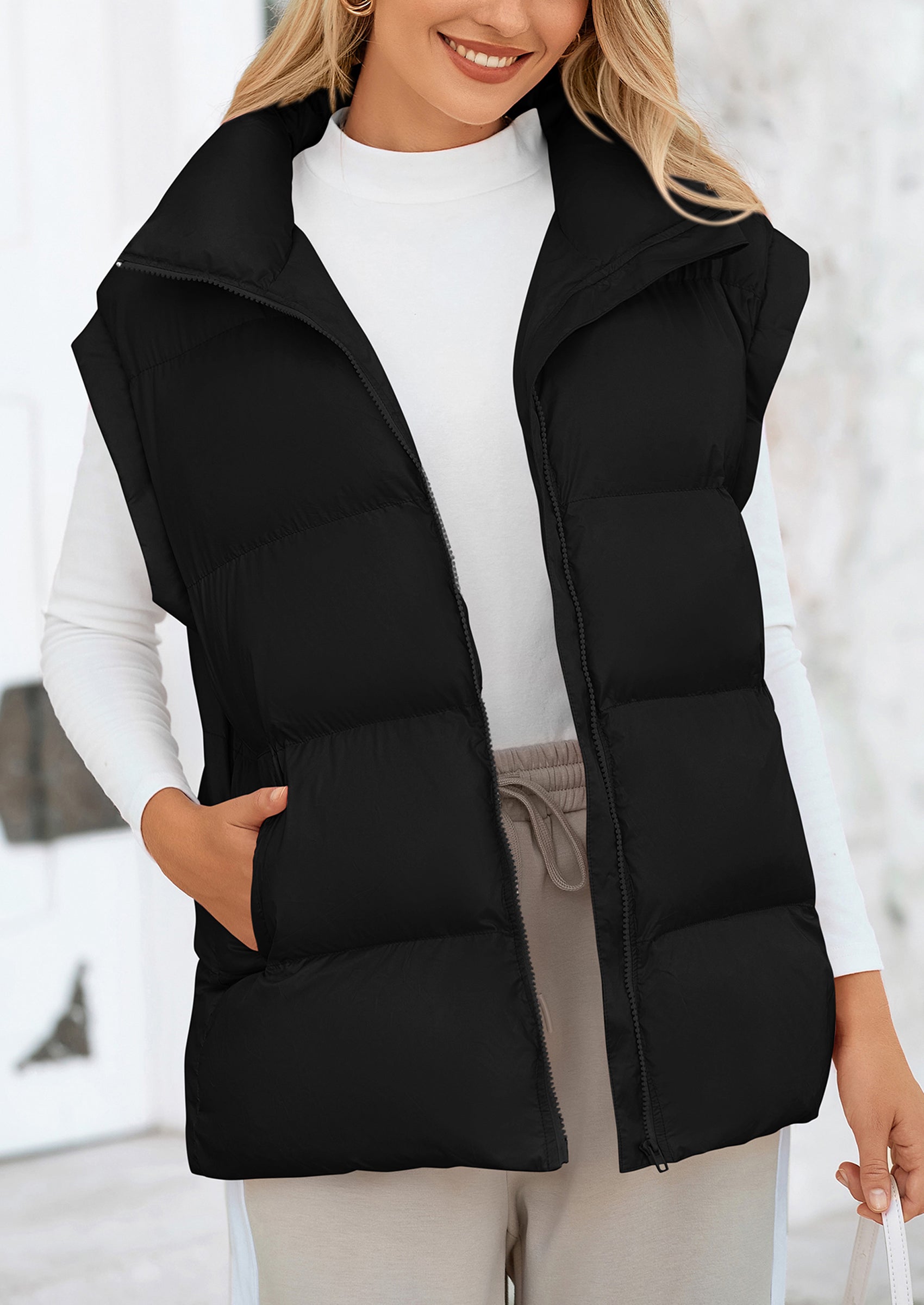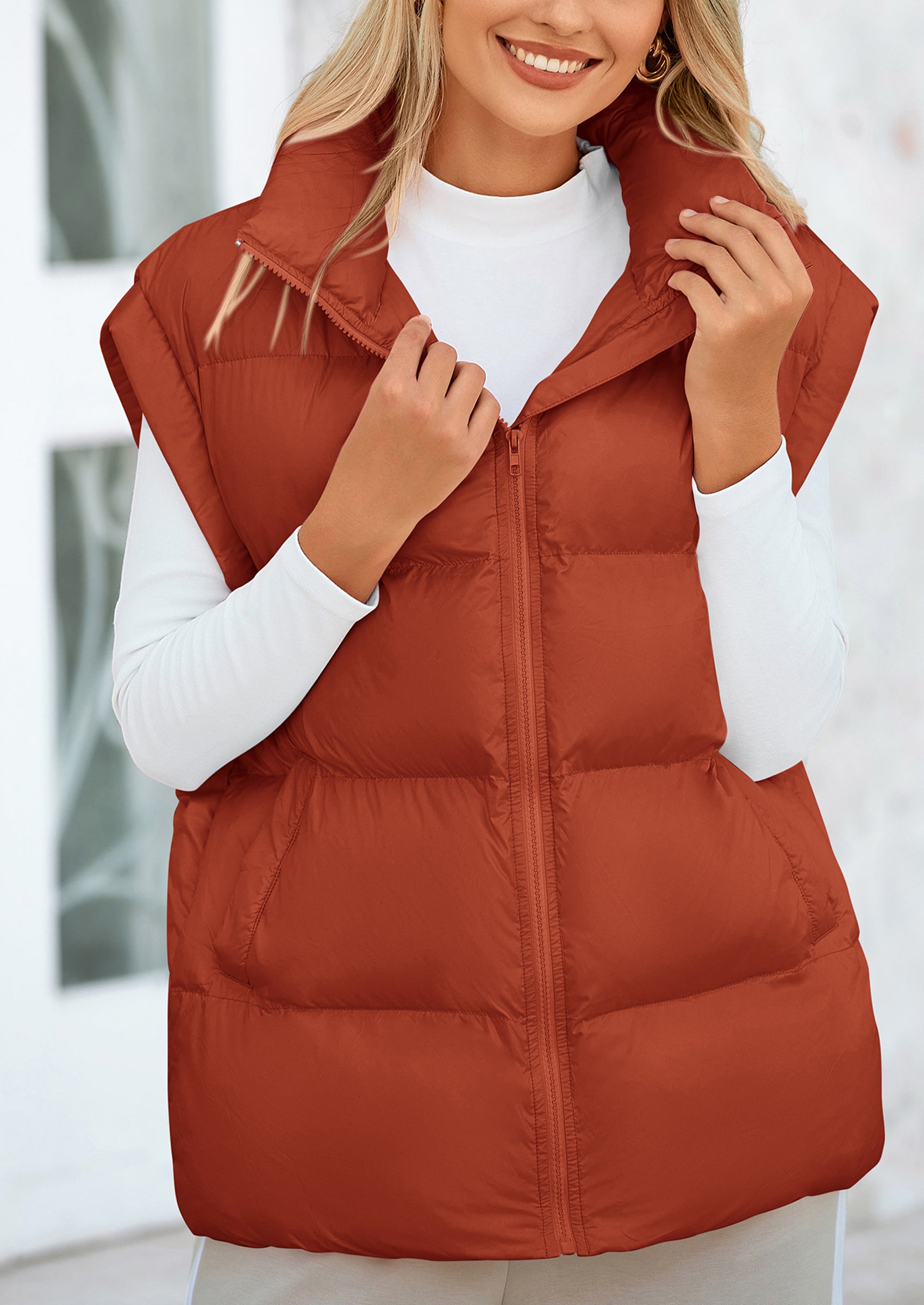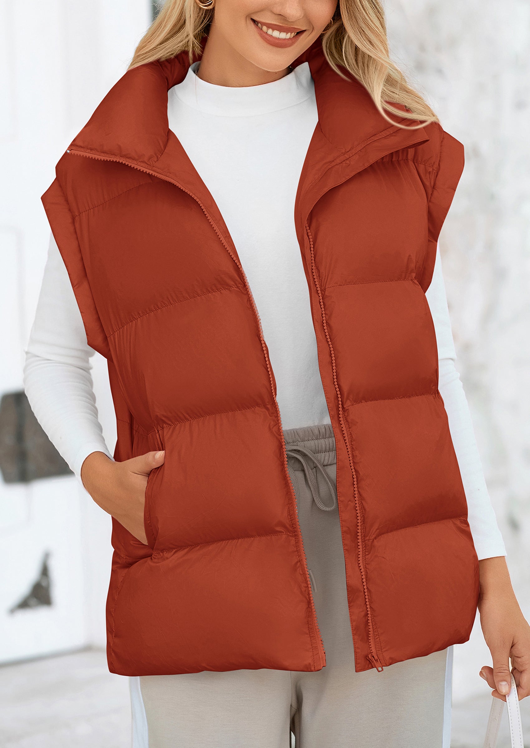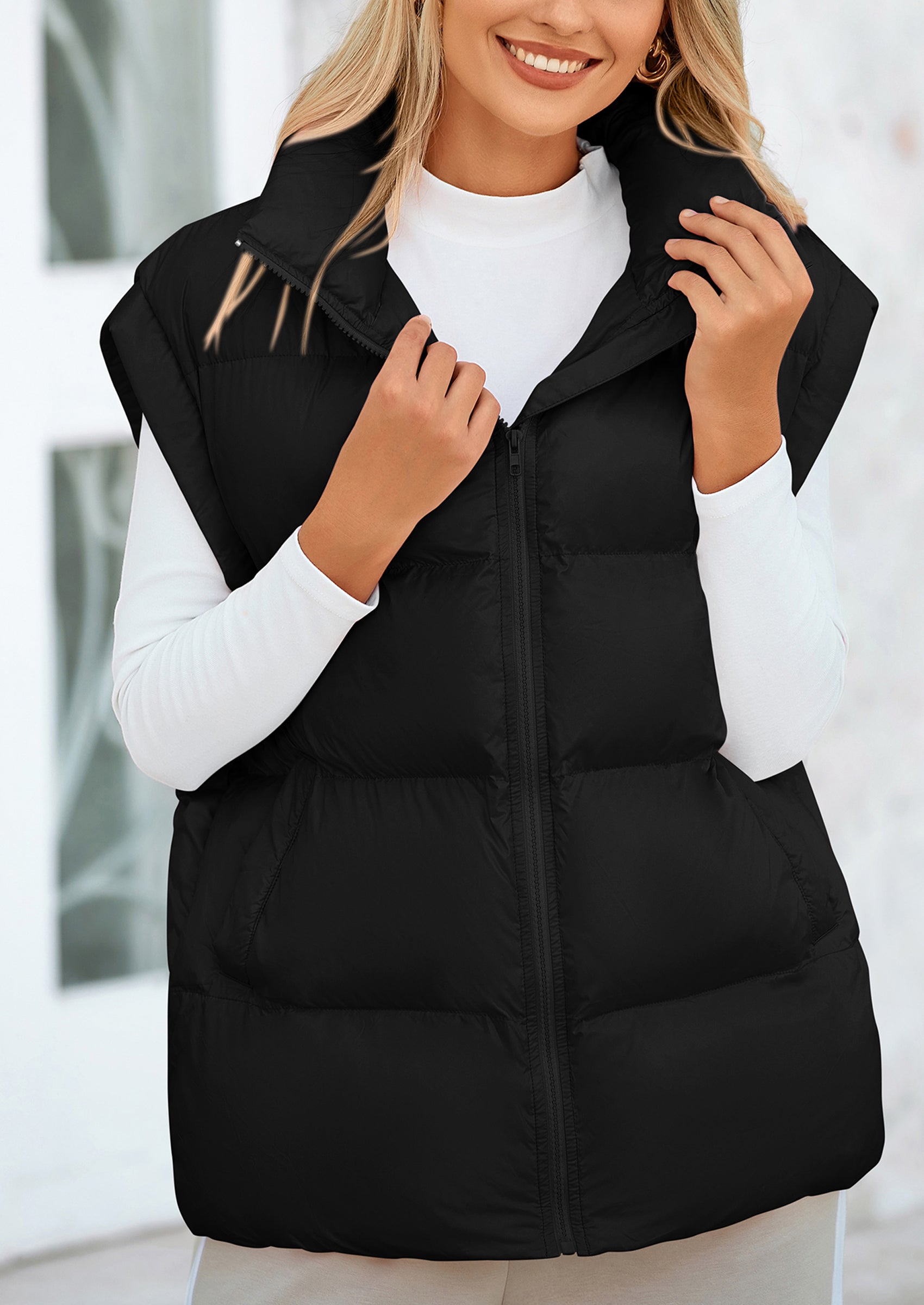STYLISH DESIGN: This Outerwear with Full Zipper Closure, Allowing for Quick and Easy Adjustments. Matching with Tops and Sweaters, This Vest Is A Versatile Piece in Wardrobe. Equipped with Practical Pockets for Small Essentials or Keeping Hands Warm