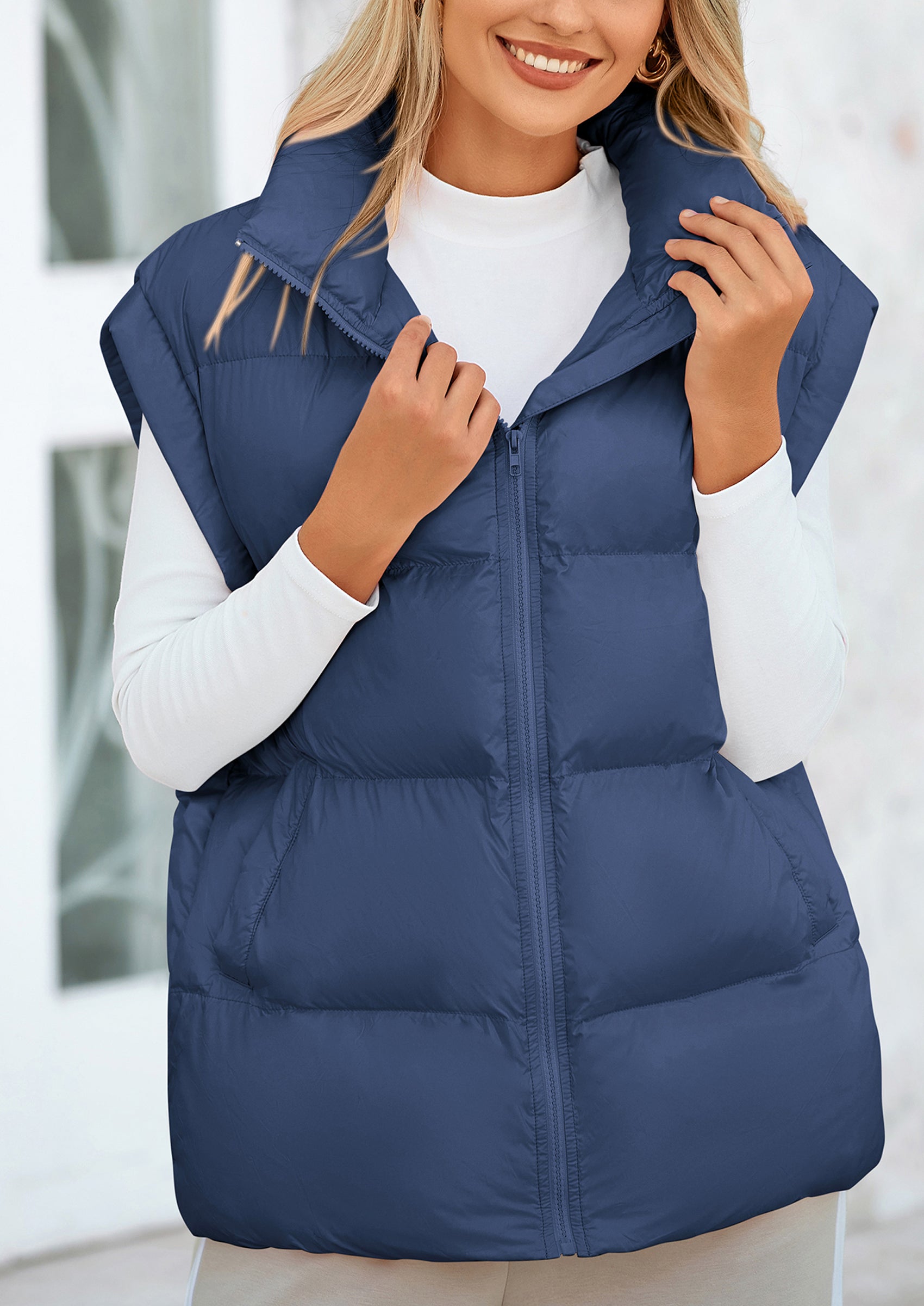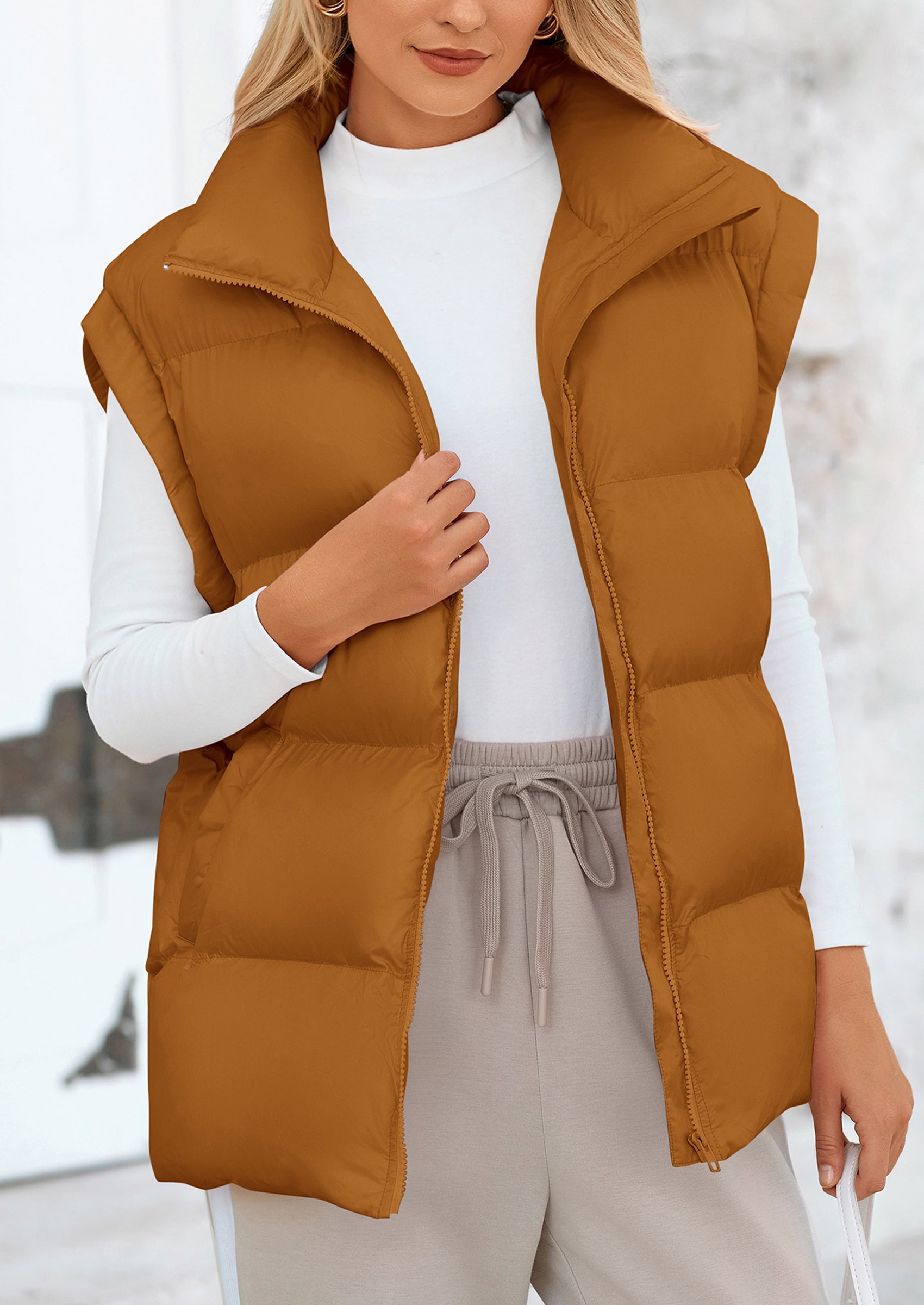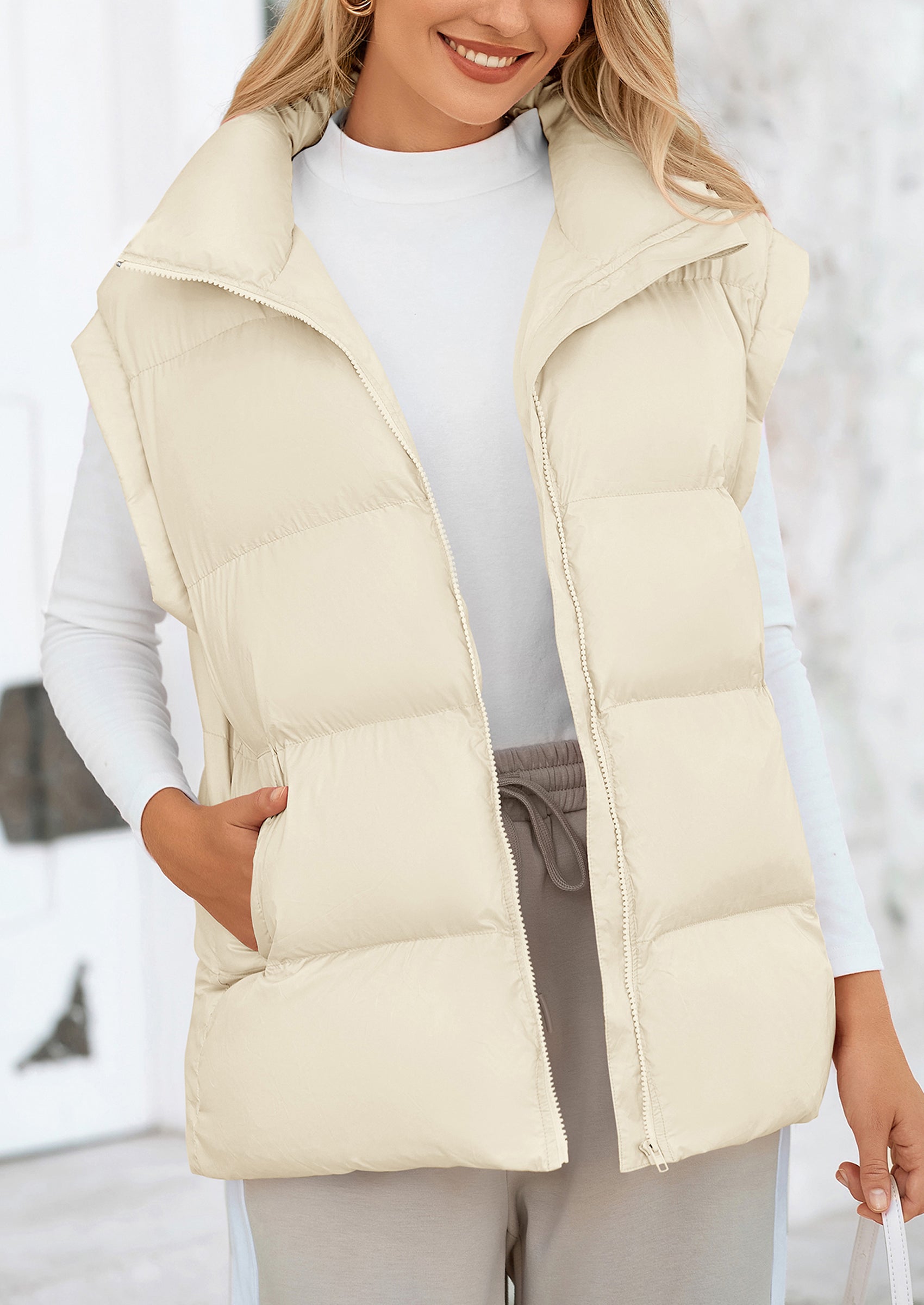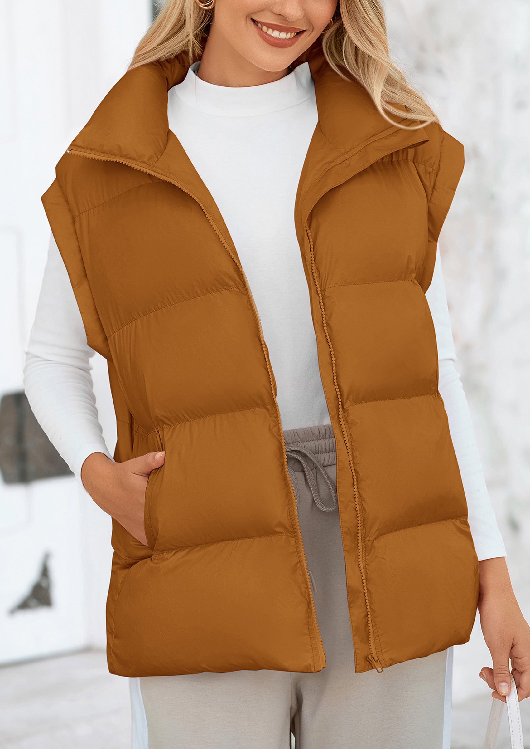STYLISH DESIGN: This Outerwear with Full Zipper Closure, Allowing for Quick and Easy Adjustments. Matching with Tops and Sweaters, This Vest Is A Versatile Piece in Wardrobe. Equipped with Practical Pockets for Small Essentials or Keeping Hands Warm