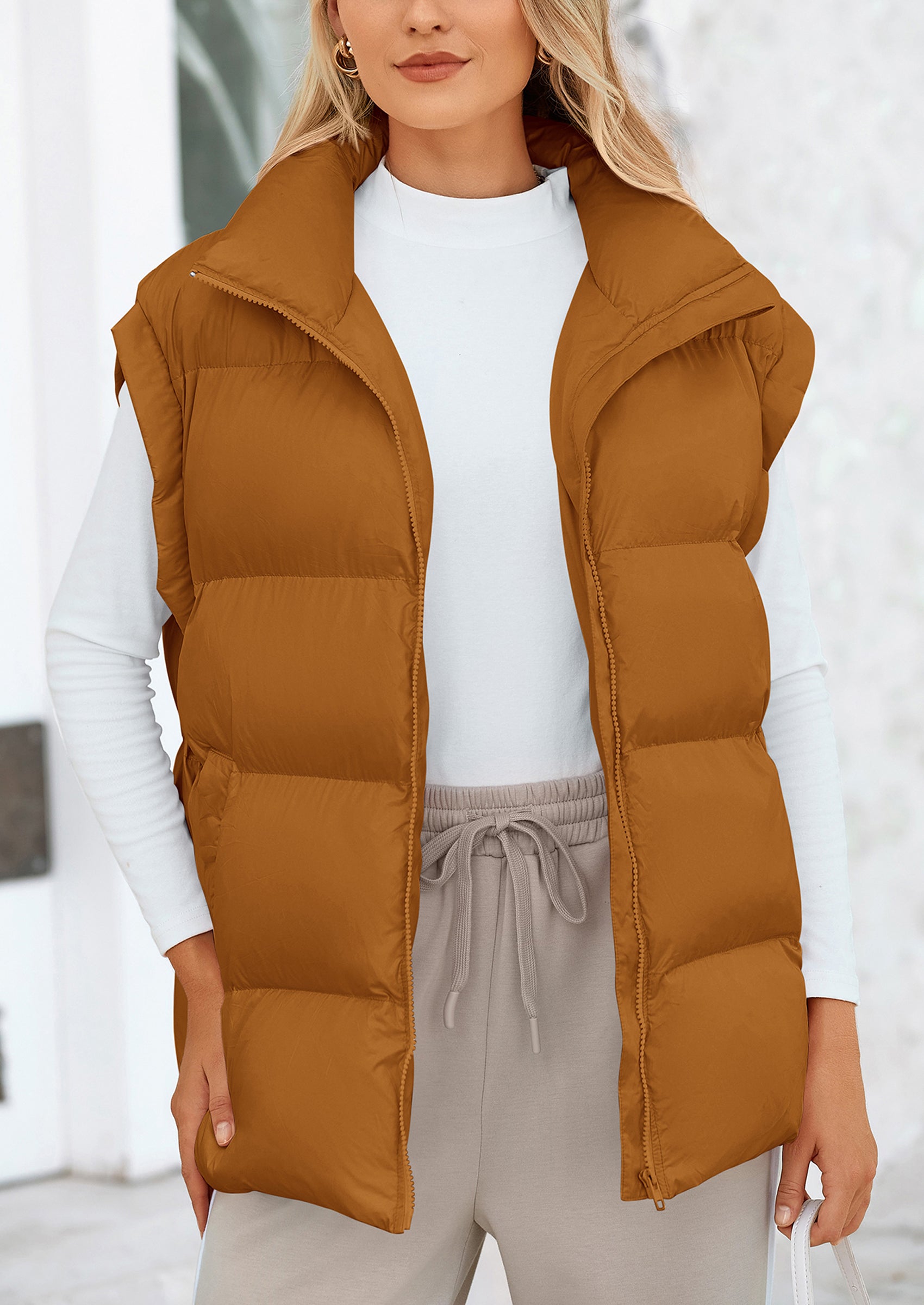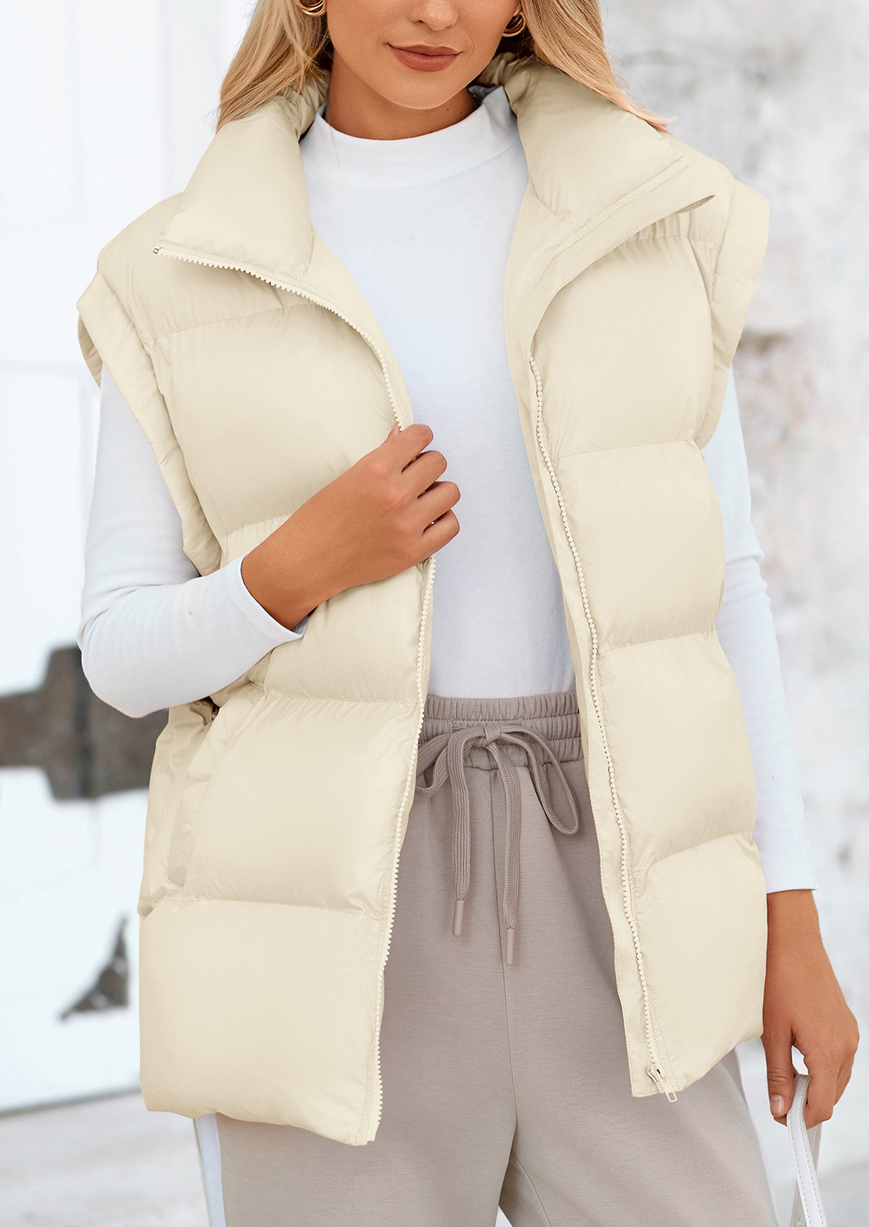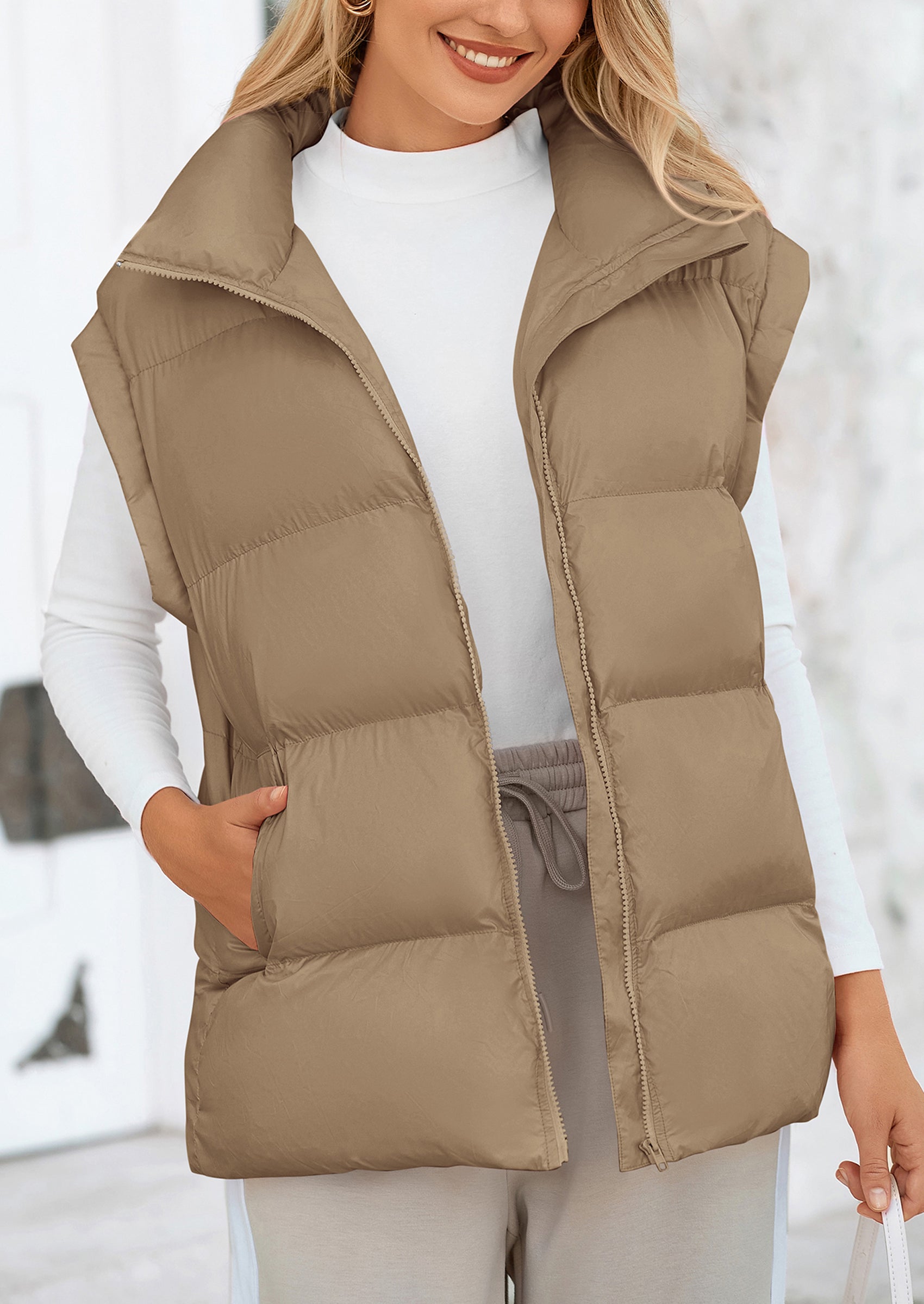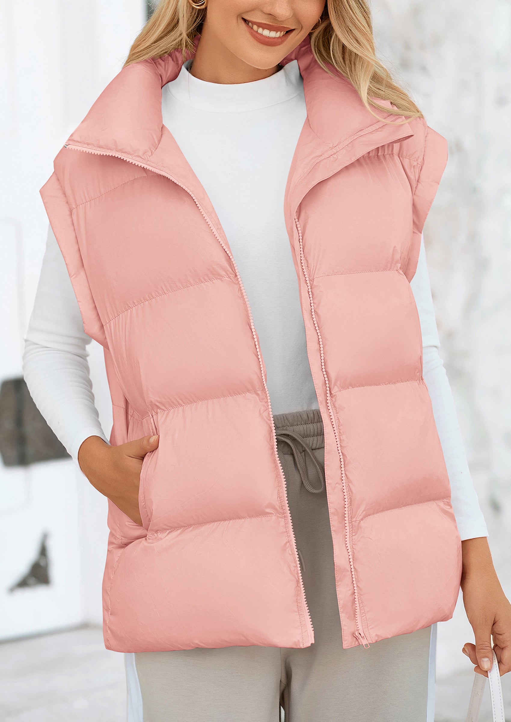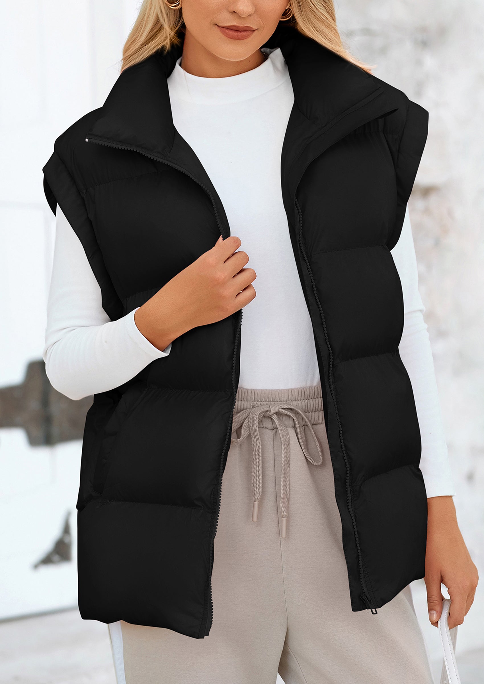 STYLISH DESIGN: This Outerwear with Full Zipper Closure, Allowing for Quick and Easy Adjustments. Matching with Tops and Sweaters, This Vest Is A Versatile Piece in Wardrobe. Equipped with Practical Pockets for Small Essentials or Keeping Hands Warm