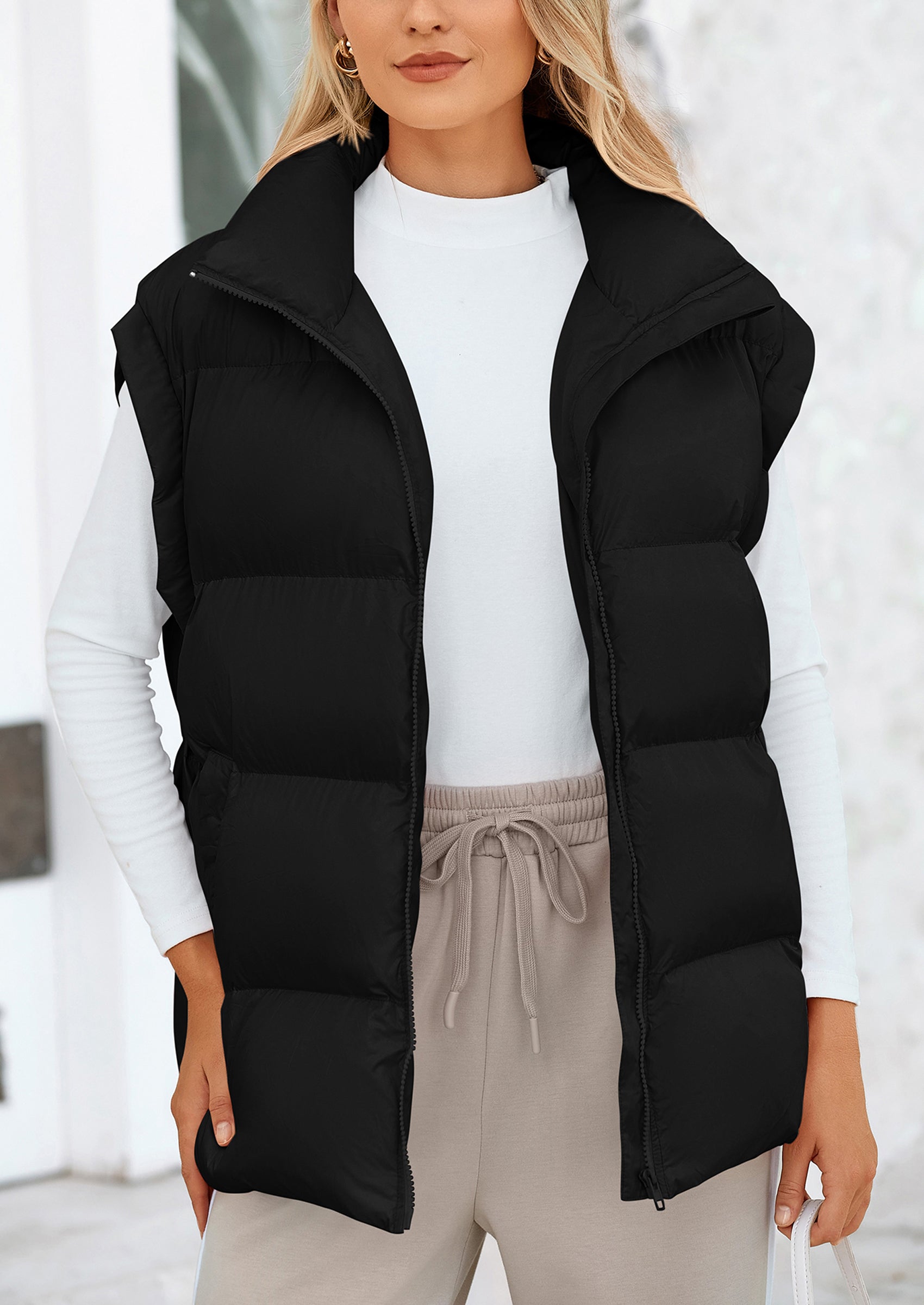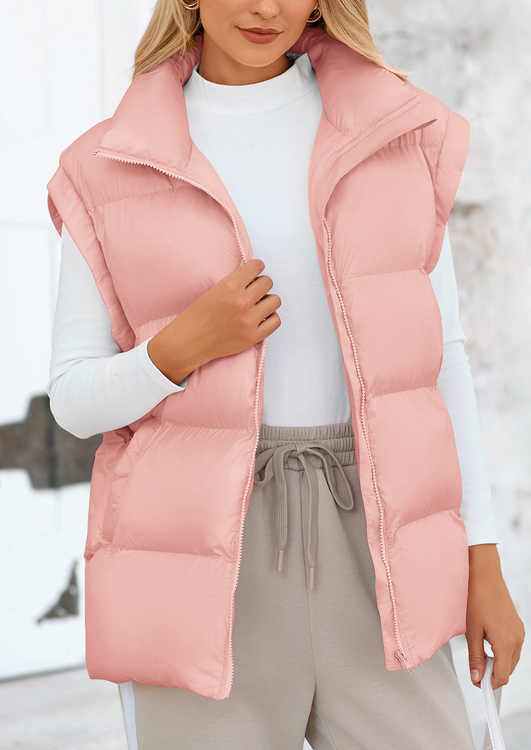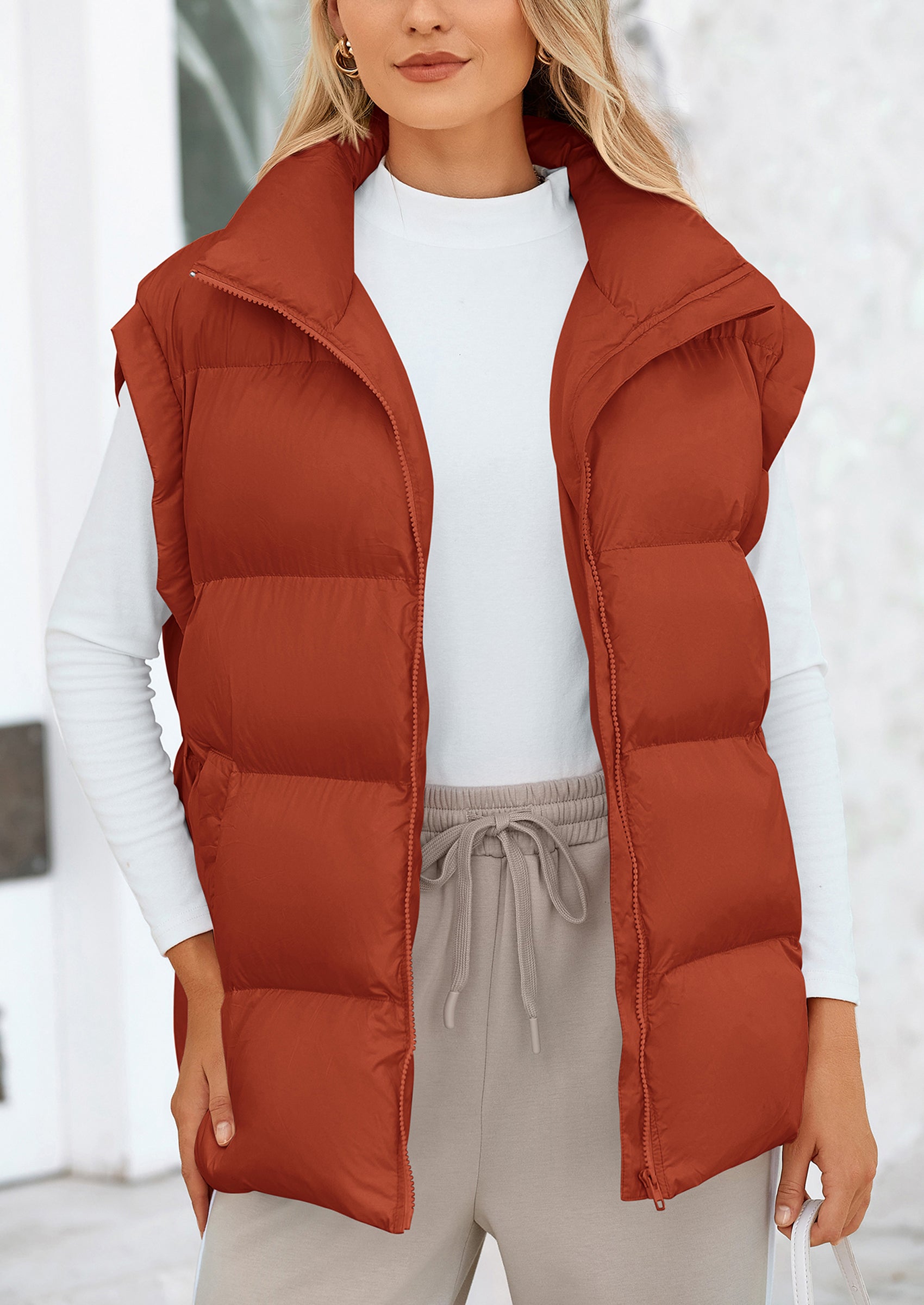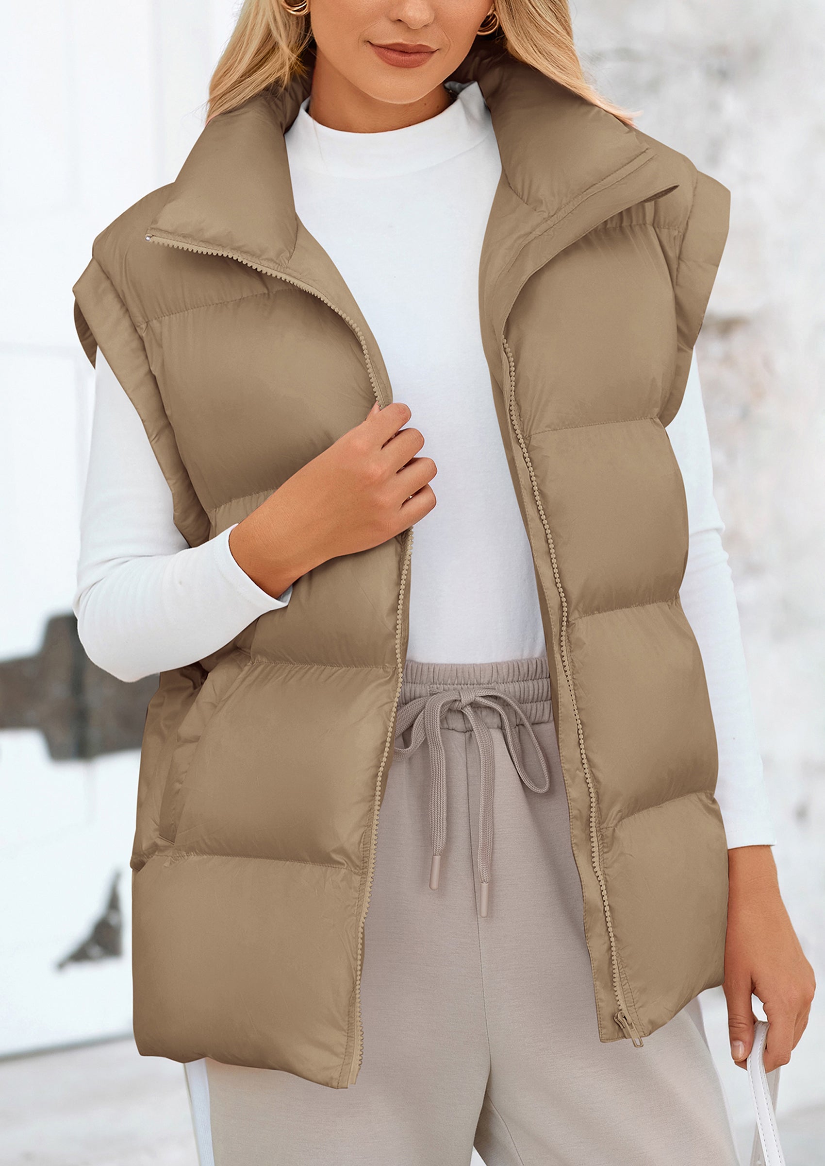 STYLISH DESIGN: This Outerwear with Full Zipper Closure, Allowing for Quick and Easy Adjustments. Matching with Tops and Sweaters, This Vest Is A Versatile Piece in Wardrobe. Equipped with Practical Pockets for Small Essentials or Keeping Hands Warm
