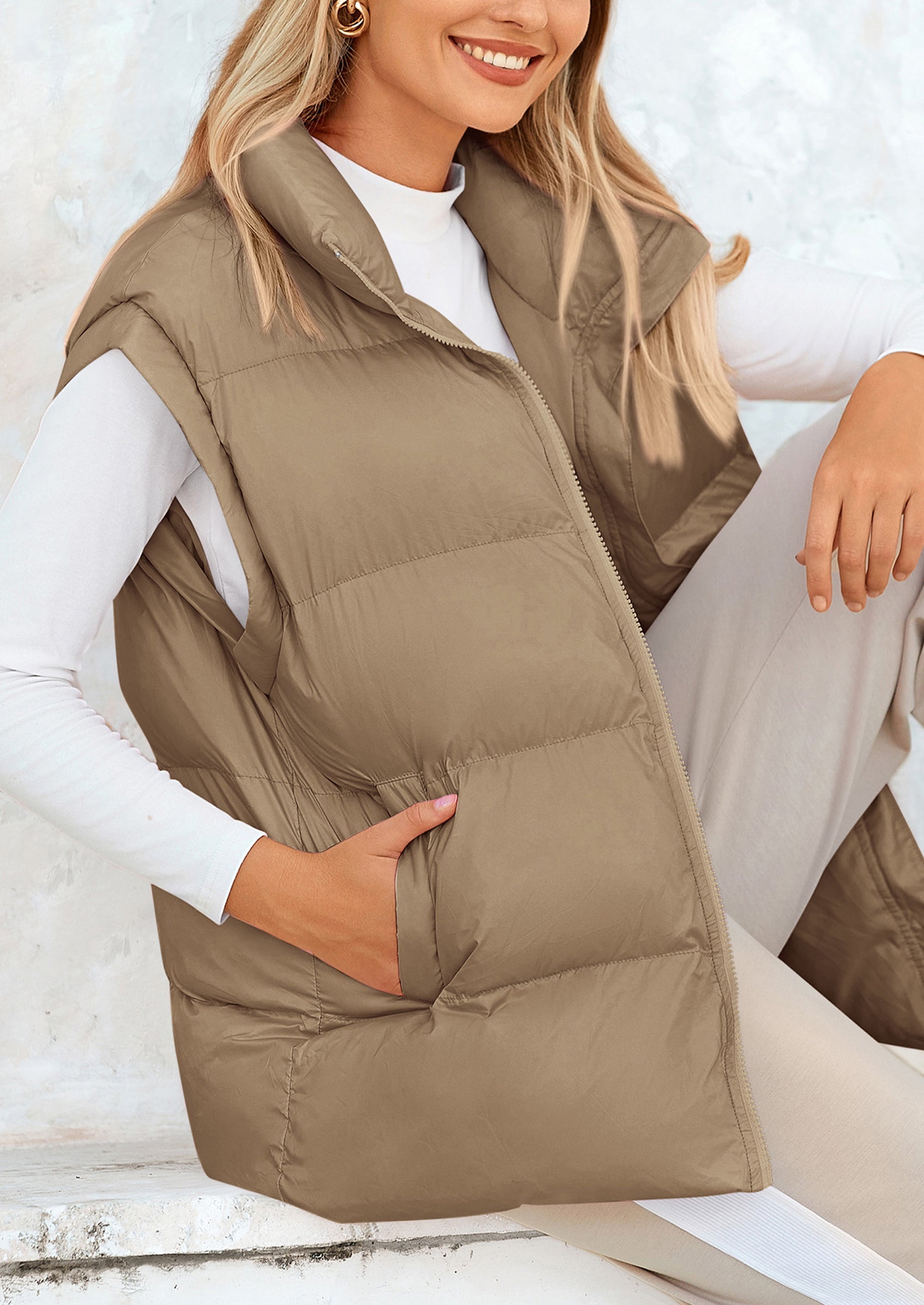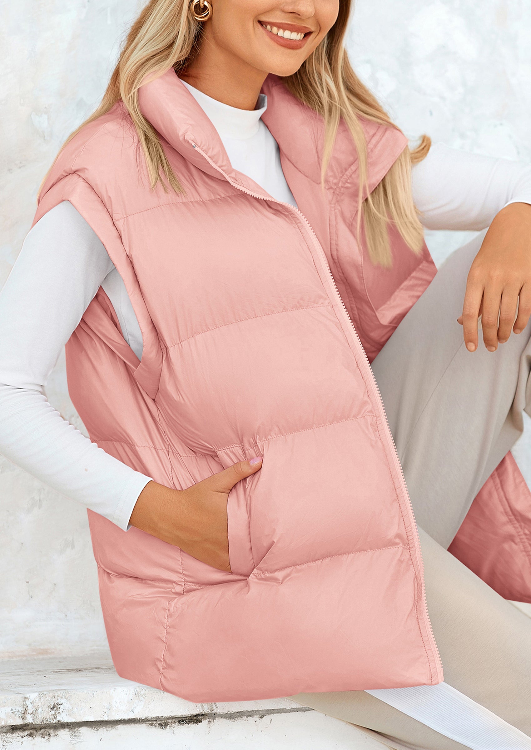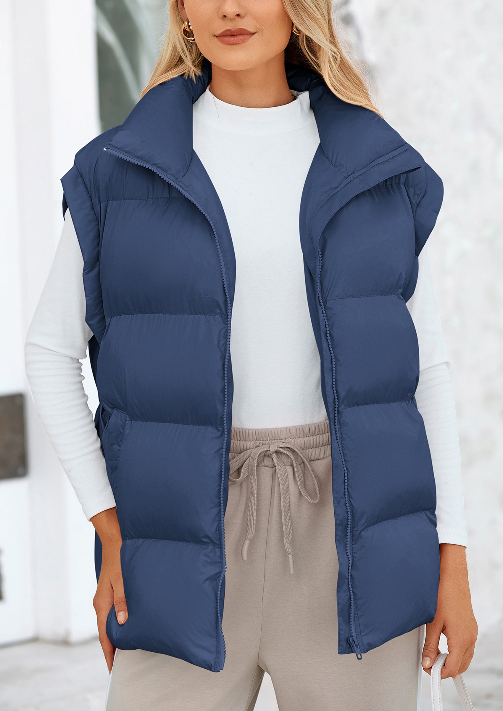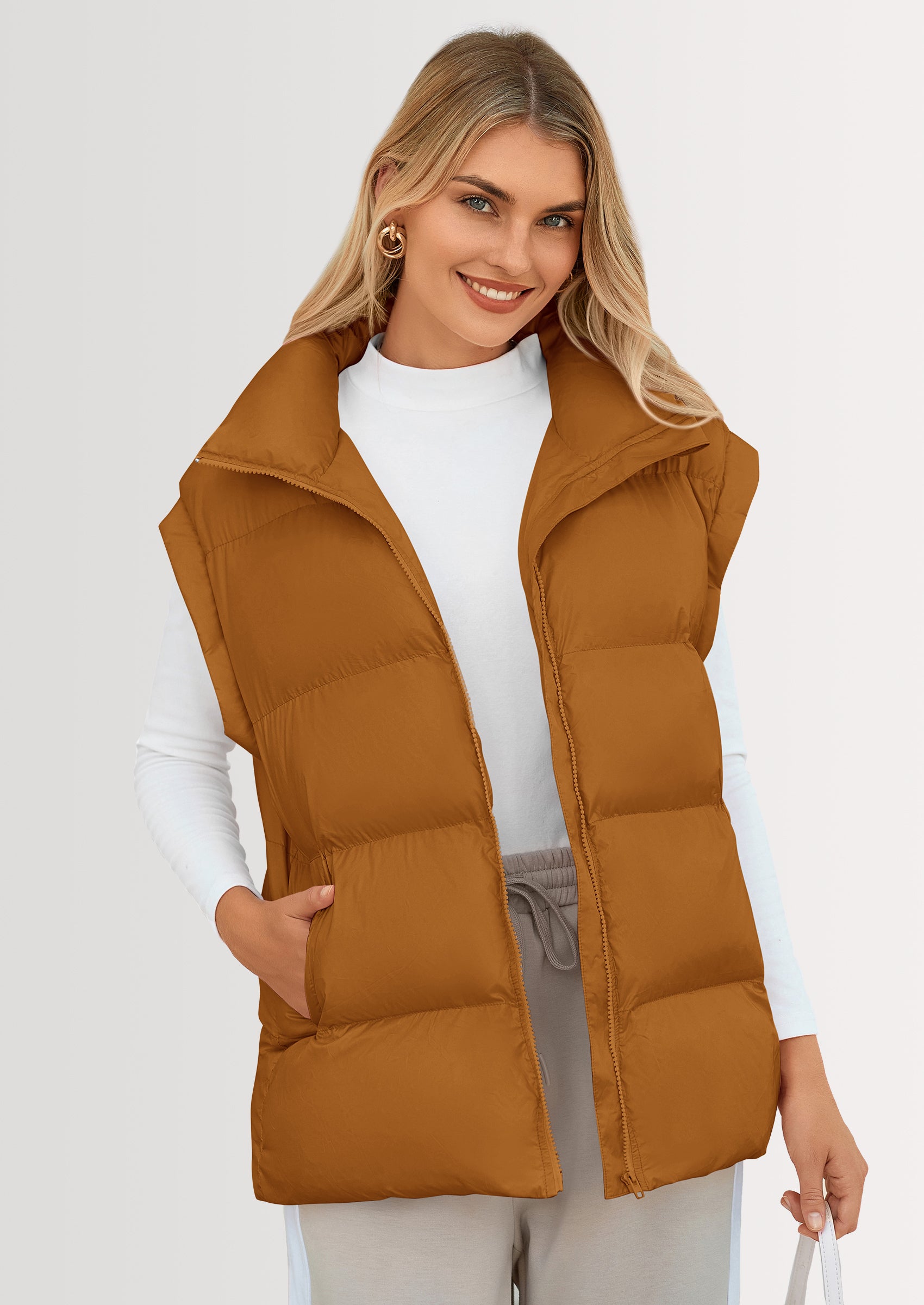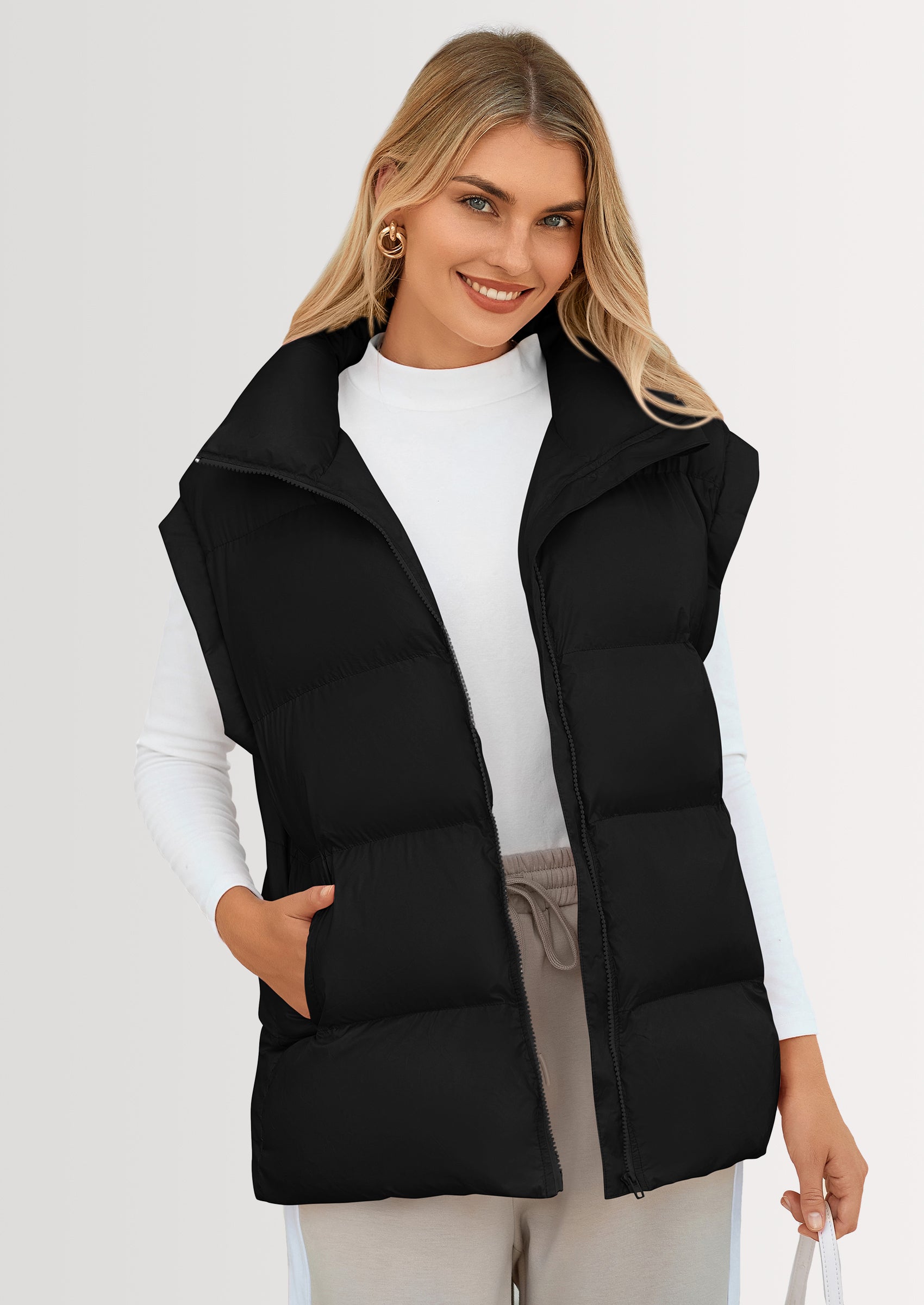 STYLISH DESIGN: This Outerwear with Full Zipper Closure, Allowing for Quick and Easy Adjustments. Matching with Tops and Sweaters, This Vest Is A Versatile Piece in Wardrobe. Equipped with Practical Pockets for Small Essentials or Keeping Hands Warm